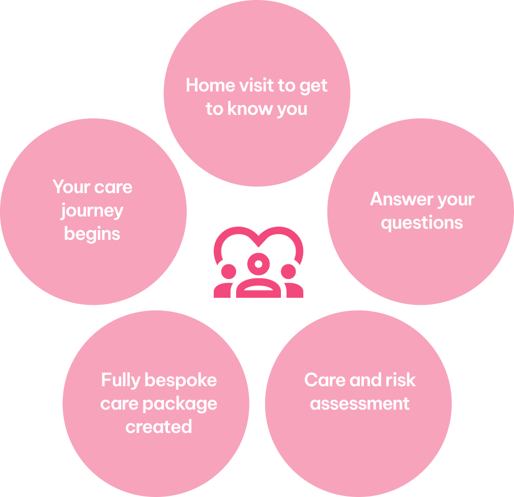The first step to setting up successful home care support is a visit to the person’s home. Our visit allows us to introduce ourselves and answer all your questions. We take the time to get to know you and your relations, to find out about personal preferences, interests and lifestyle as well as any health-related requirements to ensure you, and your loved ones if you wish, are fully involved in all aspects of the planning and decision-making process. We will gather this information to get a realistic idea of the level of care that is required and conduct a care and risk assessment for you so that we can create a fully bespoke care package.